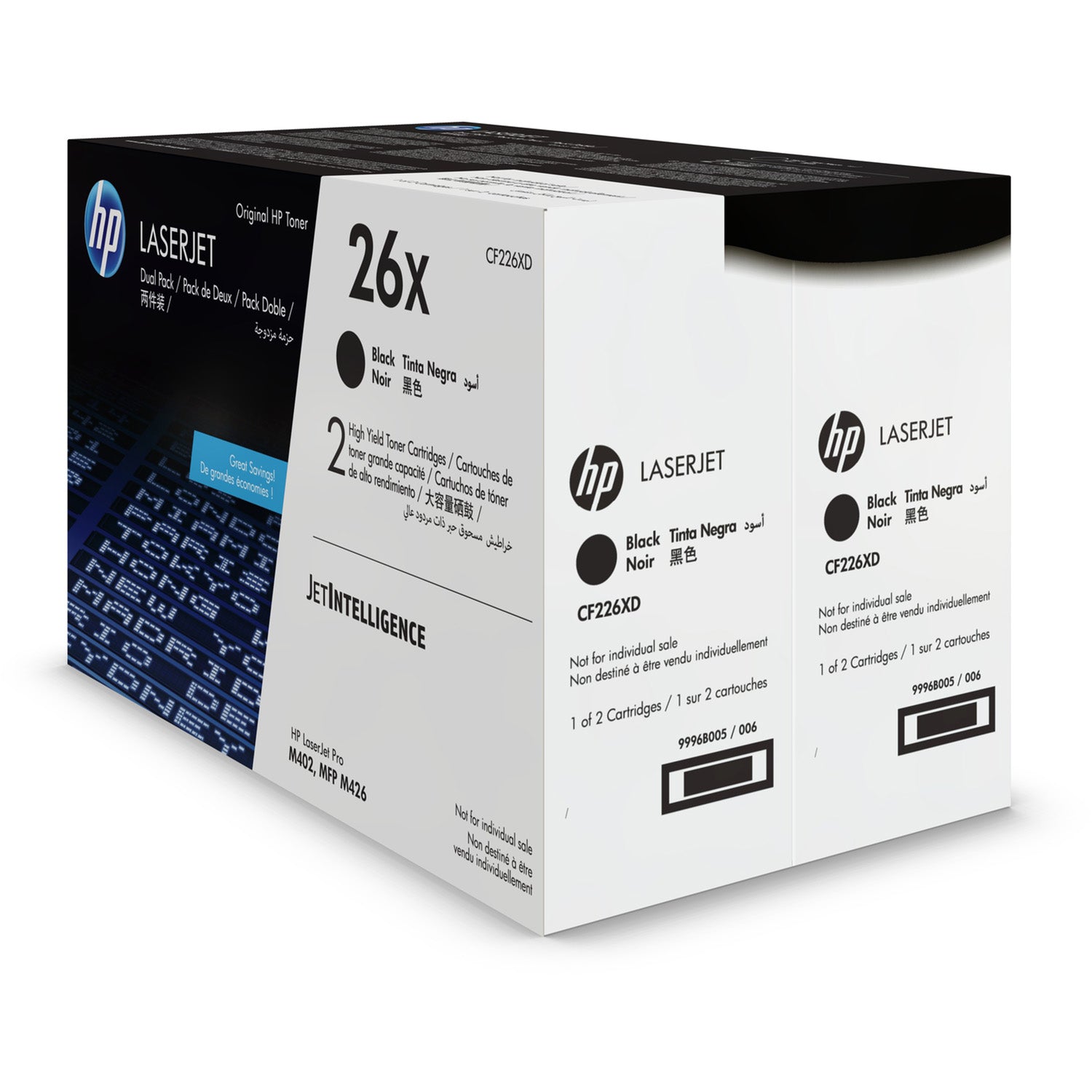 HP 26X High Yield Black Toner Cartridge 2-Pack; Includes 2 x CF226X